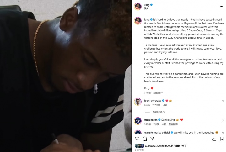 科曼深情致谢拜仁:十年岁月转瞬即逝,慕尼黑永驻我心 2025-09-11 03:01:27 意甲 113℃ 0 8月16日最新消息,法国边锋科曼在社交媒体上向拜仁慕尼黑道别,结束长达十年的效力生涯,即将转会沙特球队利雅得胜利。 上一篇:开云-詹俊:如果安东尼赛季结束离开曼联加盟贝蒂斯,是不是皆大欢喜? 下一篇:kaiyunsports-古利特:巴黎比赛观赏性极佳 梅罗时代即将落幕&要看年轻人了 相关推荐 勇士VS鹈鹕首发:库里缺阵两场后复出 搭档波杰姆巴特勒穆迪追梦 一个数据之王,一个冠军之王,谁才是历史第一控卫? 记者:米内罗无望参加今年中超剩余比赛,戴伟浚有赶上联赛可能 桑乔经纪人抵达都灵,尤文还考虑拉什福德,埃弗顿3000万求购道路