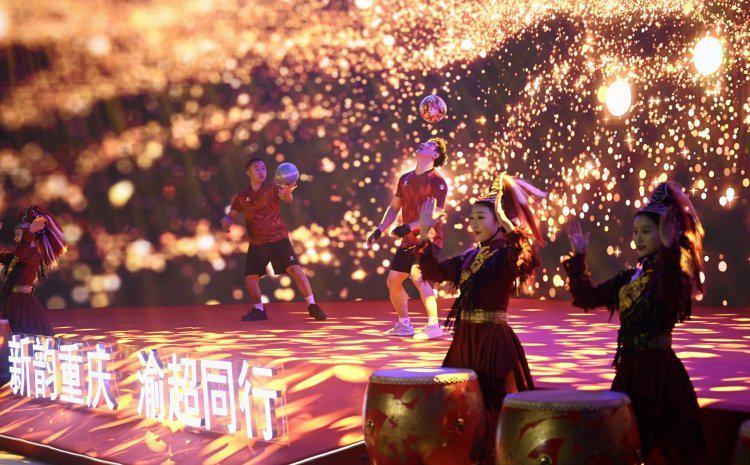 2026年2月5日,重庆悦来国际会议中心,“新韵重庆 渝超同行”2025重庆城市足球超级联赛总决赛抽签仪式现场的花式足球表演。记者 崔力 摄/视觉重庆